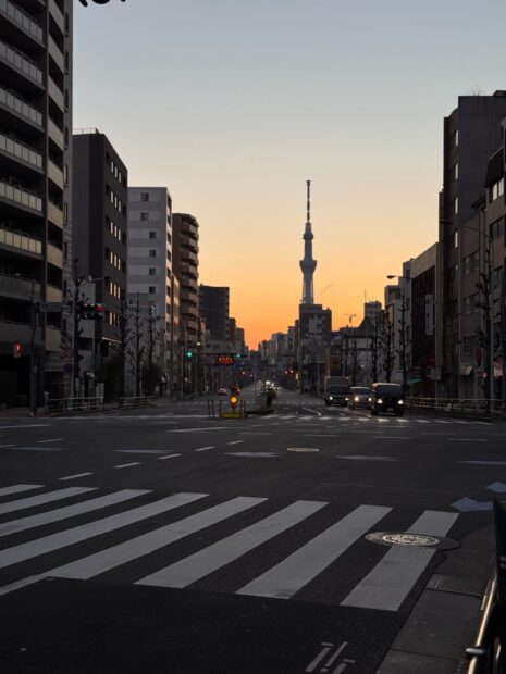 入谷の交差点からもスカイツリーがよく見えます