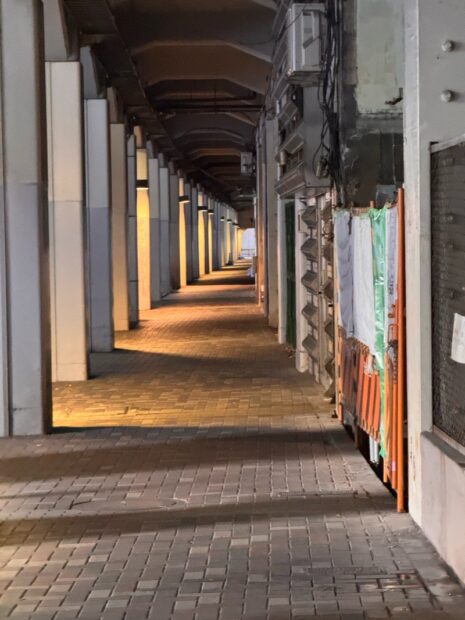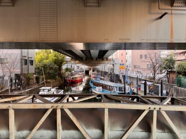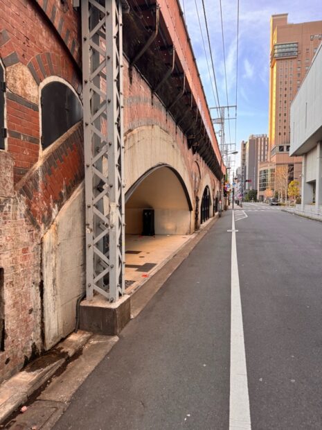 高架下脇を進みます